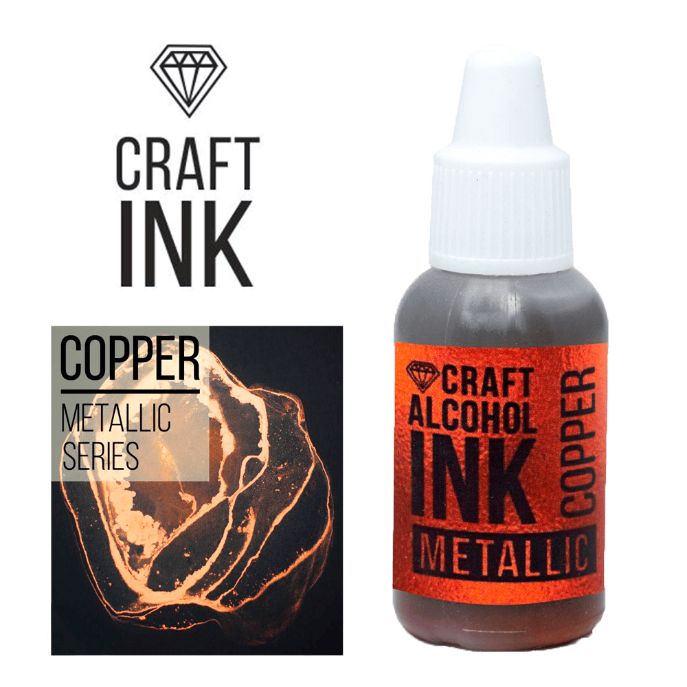 Алкогольные чернила CraftAlcoholInk - Copper серии Metallic быстросохнущий краситель на спиртовой основе. Позволяет добавить блеск Меди вашим работам с спиртовыми чернилами. Разведеный спиртом металлический пигмент ложится островками не перекрывая основные тона. Без разведения ложится равномерно создавая блестящую металическую поверхность.
