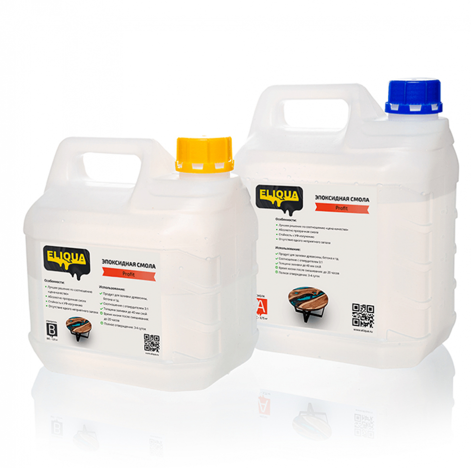 Прозрачная эпоксидная смола Eliqua Profit (жидкая) - это специальная смола, позволяющая получить толщину одного слоя до 4см, что очень удобно при заливке столешниц и других объемных изделий. Подходит для работы с древесиной, бетоном, металлом.