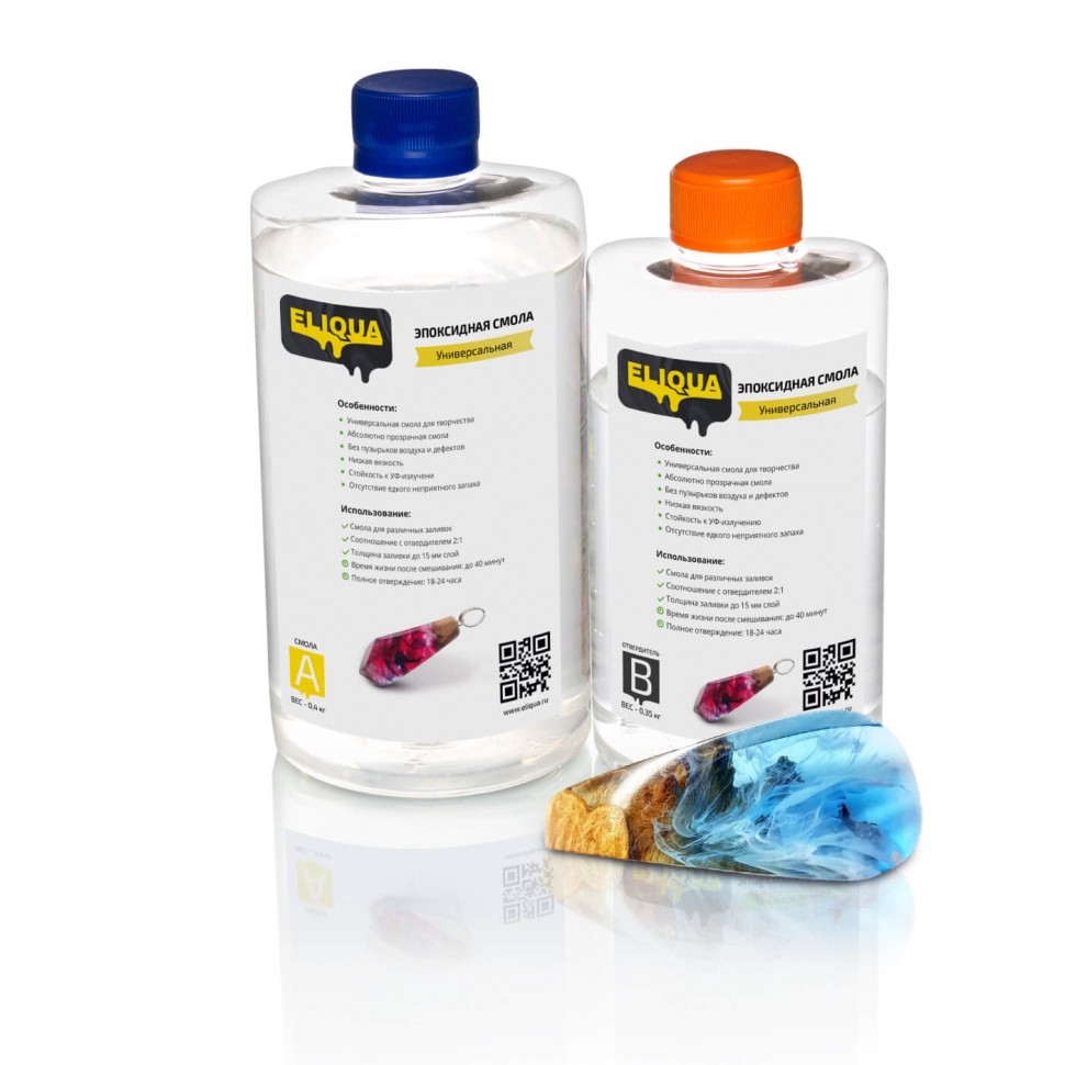 Универсальная эпоксидная смола подходит для различных целей: рисования, заливки украшений, столов, грунтовки древесины и другого.