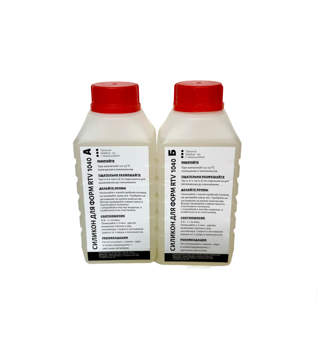Силикон RTV 1040 двухкомпонентный компаунд на основе платинового катализатора с твердостью 40 ед. по шкале ШОРа А. Назначение - изготовление форм для литья бетона, смол, пластика и технических изделий, эксплуатирующихся при температуре от -50°C до 210°C. Обладает химической стойкостью и инертностью, может применяться для изделий, контактирующих с пищевыми продутами.