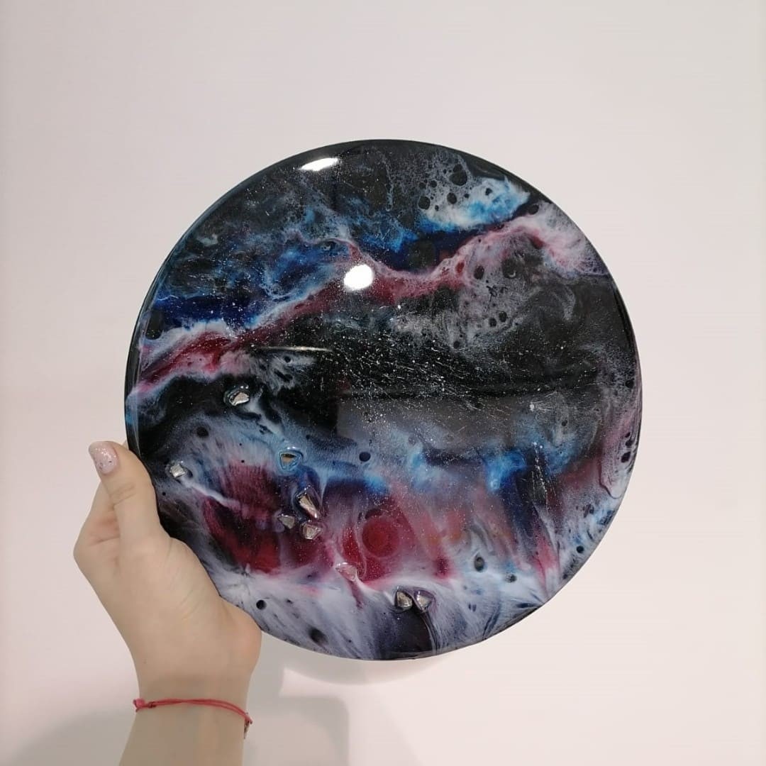 Все материалы, а именно: эпоксидная смола, красители, добавки и Артборд круг диаметром 25 см.