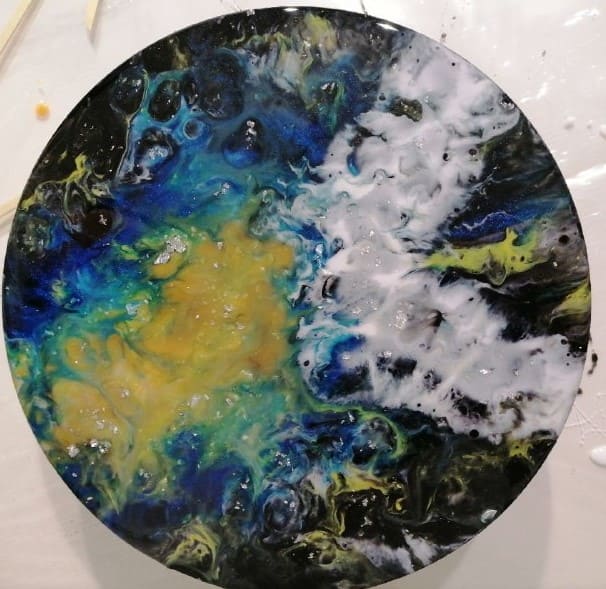 Мы знакомим Вас именно с материалом "эпоксидная смола", поэтому обучение проходит на Артборде круг 25 см. На большой площади сложнее сконцентироваться, а нам важно донести до Вас всю информацию на практике.