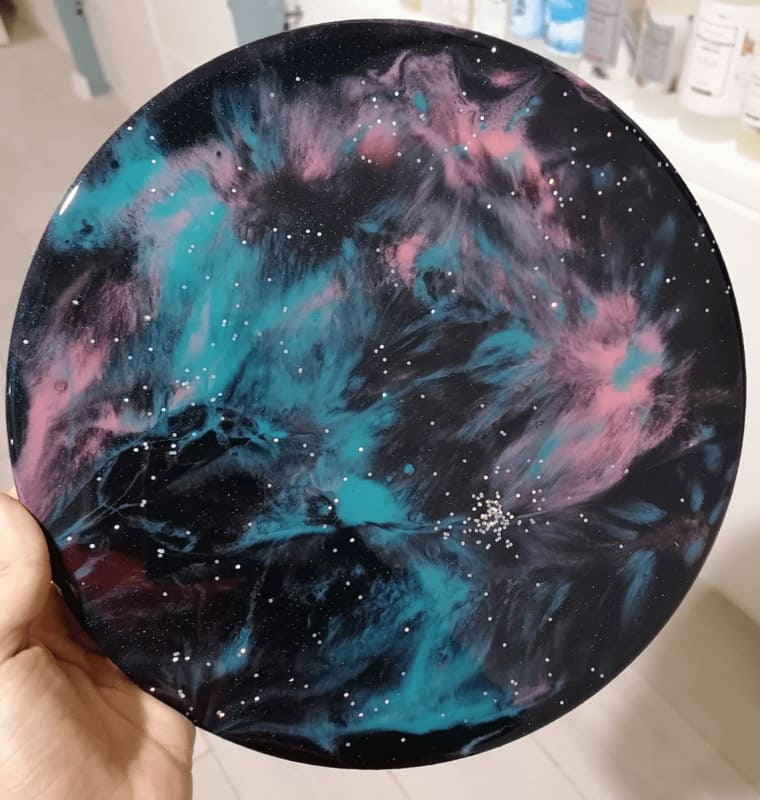 Далее мы наглядно покажем, как нарисовать эпоксидной смолой Космос.