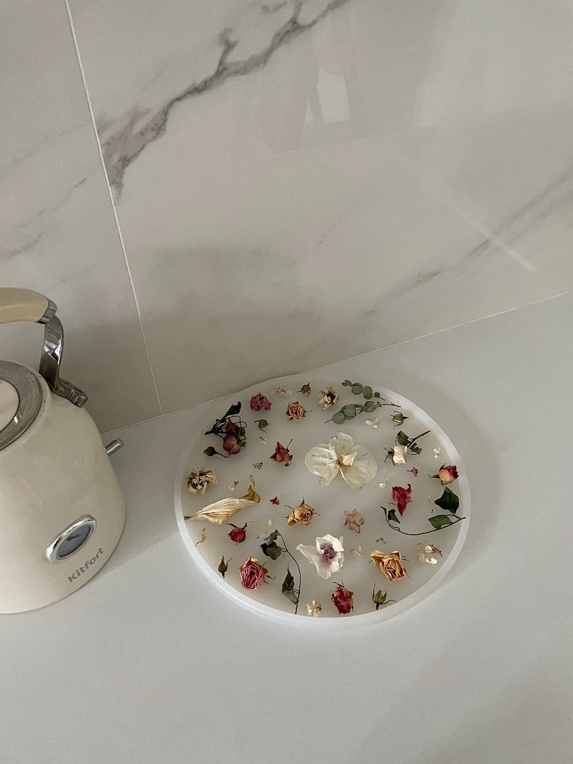 Создание подноса из цветов и эпоксидной смолы